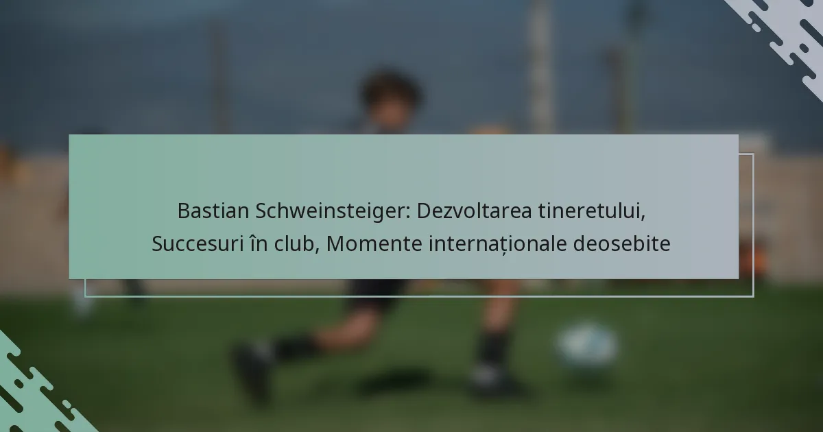 Dezvoltarea tineretului lui Bastian Schweinsteiger a fost modelată de influențele familiale, experiențele timpurii în cluburi și figurile cheie de antrenori, care au pus fundamentul pentru cariera sa de succes în fotbal. Călătoria sa de la echipele locale de tineret la fotbalul profesionist evidențiază importanța mentoratului și dezvoltării abilităților în sport.