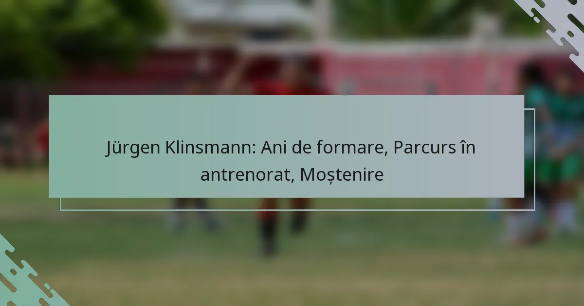 Anii de formare ai lui Jürgen Klinsmann în Germania au pus bazele carierei sale ilustre atât ca fotbalist, cât și ca antrenor. Parcursul său în antrenorat este caracterizat prin strategii inovatoare și realizări notabile, transformând echipele pe care le-a condus și lăsând o amprentă durabilă asupra sportului. Moștenirea lui Klinsmann este definită de stilul său de joc unic și de filosofia sa de antrenorat, care continuă să influențeze fotbalul modern și să inspire generațiile viitoare.